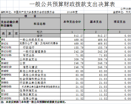 我委2018年度一般公共預算財政撥款基本支出812.27萬元,其中: