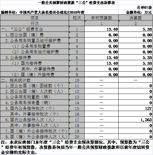 ??? (一)“三公經費”:納入財政預決算管理的“三公”經費,是指部門用財政撥款安排的因公出國(境)費、公務用車購置及運行費和公務接待費。我委只有公務接待費,反映我委按規定開支的各類公務接待(含外賓接待)支出。