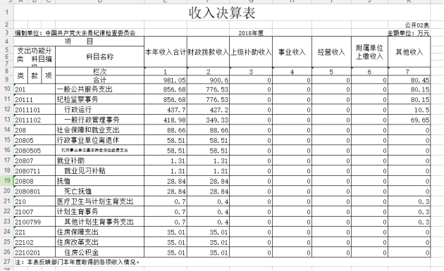 本年收入合計981.05萬元,較2017年增加24.37萬元,增長25.47 %,主要原因是工資調標增加了人員經費、財政下撥了創建文明城市相關工作經費及監察體制改革后人員增加、人員經費、辦公辦案經費增加。