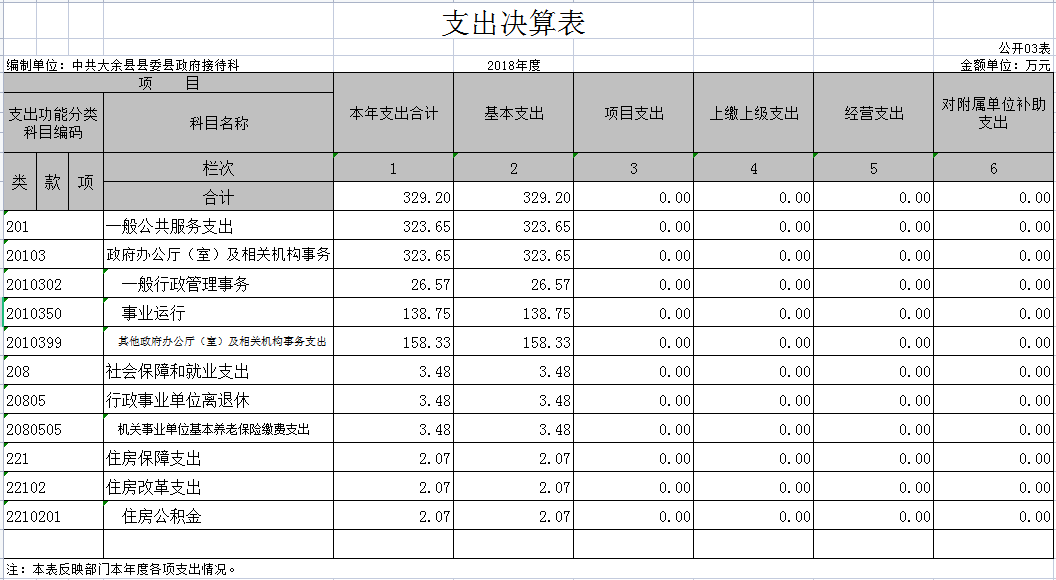 本部門2018年度支出總計 329.2 萬元,其中本年支出合計 329.2 萬元,較2017年減少 285.25萬元,下降46.4 %,年末結(jié)轉(zhuǎn)和結(jié)余 107.53 萬元,較2017年減少34.03 萬元,下降24 %,主要原因是:公務(wù)接待費的減少。