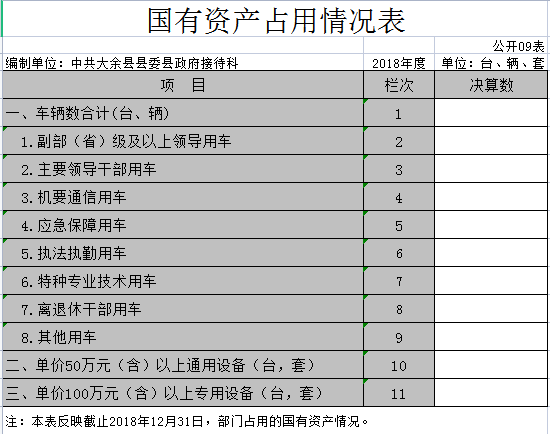 截止2018年12月31日,本部門共有車輛0 輛,其中,副部(省)級及以上領(lǐng)導(dǎo)用車 0 輛、主要領(lǐng)導(dǎo)干部用車0 輛、機要通信用車 0 輛、應(yīng)急保障用車 0 輛、執(zhí)法執(zhí)勤用車 0 輛、特種專業(yè)技術(shù)用車 0 輛、其他用車 0 輛;單位價值50萬元以上通用設(shè)備 0 臺(套);單位價值100萬元以上專用設(shè)備 0 臺(套)。
