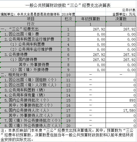 (五)“三公經(jīng)費”:納入財政預(yù)決算管理的“三公”經(jīng)費,是指部門用財政撥款安排的因公出國(境)費、公務(wù)用車購置及運行費和公務(wù)接待費。其中,因公出國(境)費反映單位公務(wù)出國(境)的國際旅費、國外城市間交通費、住宿費、伙食費、培訓(xùn)費、公雜費等支出;公務(wù)用車購置及運行費反映單位公務(wù)用車車輛購置支出(含車輛購置稅)及租用費、燃料費、維修費、過路過橋費、保險費、安全獎勵費用等支出;公務(wù)接待費反映單位按規(guī)定開支的各類公務(wù)接待(含外賓接待)支出。
