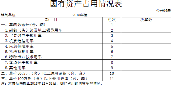 截止2018年12月31日,本部門共有車輛 0 輛,其中,副部(省)級(jí)及以上領(lǐng)導(dǎo)用車0 輛、主要領(lǐng)導(dǎo)干部用車 0 輛、機(jī)要通信用車 0 輛、應(yīng)急保障用車 0 輛、執(zhí)法執(zhí)勤用車 0 輛、特種專業(yè)技術(shù)用車 0 輛、其他用車 0 輛;單位價(jià)值50萬(wàn)元以上通用設(shè)備 0 臺(tái)(套);單位價(jià)值100萬(wàn)元以上專用設(shè)備 0 臺(tái)(套)。