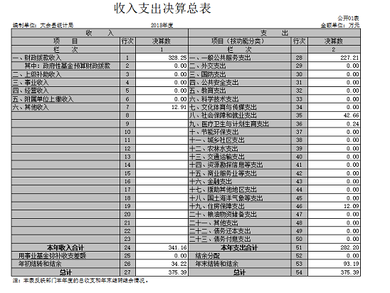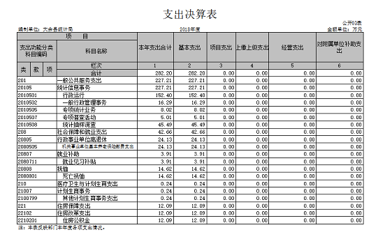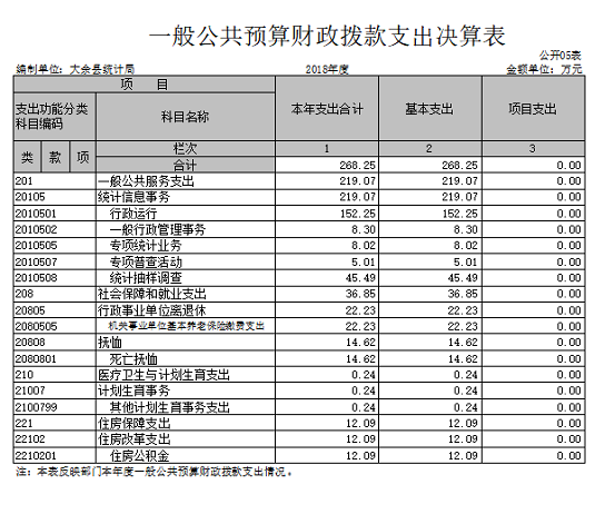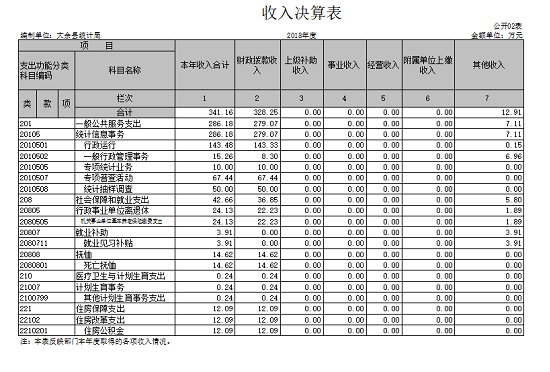 納入本套部門決算匯編范圍的單位共1個(gè),包括:大余縣統(tǒng)計(jì)局本級(jí)、農(nóng)村經(jīng)濟(jì)調(diào)查隊(duì)、普查中心、統(tǒng)計(jì)執(zhí)法大隊(duì)。