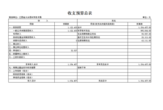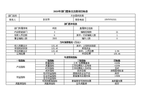 縣科學技術局共有預算單位3個,包括科技局本級和2個所屬二級預算單位(大余縣食品研究所、科技情報站)。編制人數21人,其中:全部補助事業編制16人、自收自支事業編制5人;實有人數18人,其中:在職人數6人,包括行政(參公人員)1人、全部補助事業單位人員5人;退休人員12人。