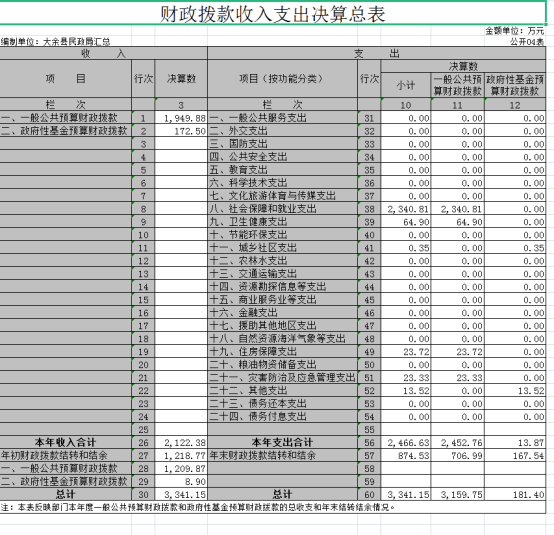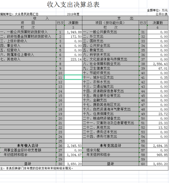 納入本套部門決算匯編范圍的單位共3個,包括大余縣民政局本級、大余縣殯葬管理所和大余縣老齡工作委員會辦公室。