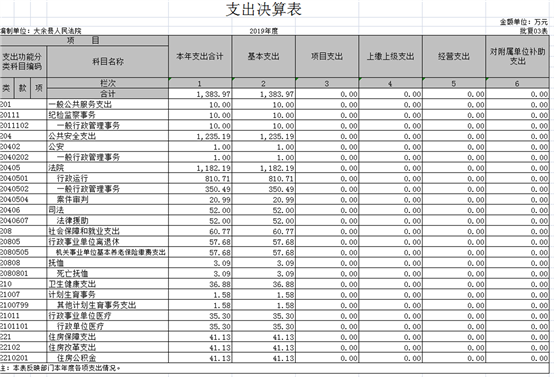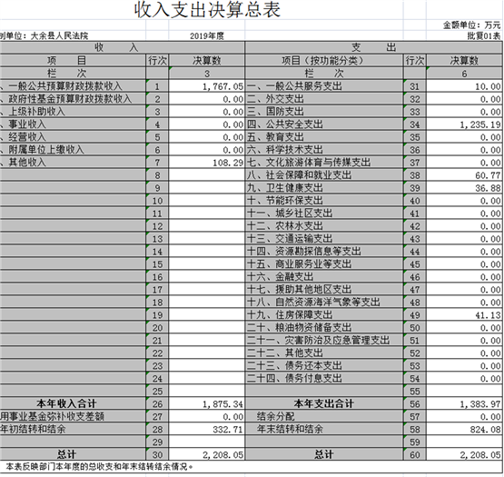 大余縣人民法院部門2019年度部門決算