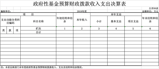 八、政府性基金預算財政撥款收入支出決算表