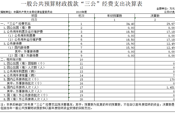 本部門(mén)2019年度一般公共預(yù)算財(cái)政撥款“三公”經(jīng)費(fèi)支出年初預(yù)算數(shù)為34.40萬(wàn)元,決算數(shù)為29.67萬(wàn)元,完成年初預(yù)算的86.25%,決算數(shù)較2018年增加1.26萬(wàn)元,增長(zhǎng)4.07%,其中: