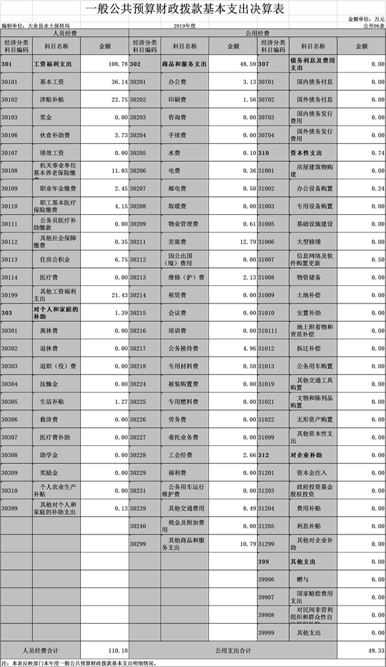 本部門2019年度一般公共預算財政撥款基本支出159.51萬元,其中: