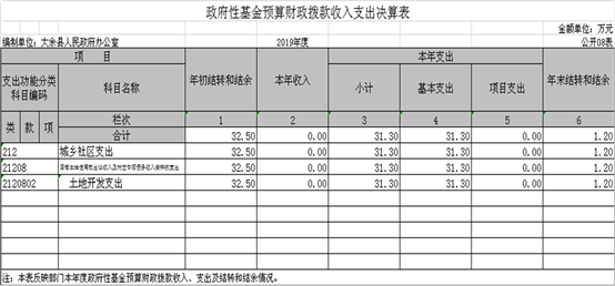 八、政府性基金預算財政撥款收入支出決算表