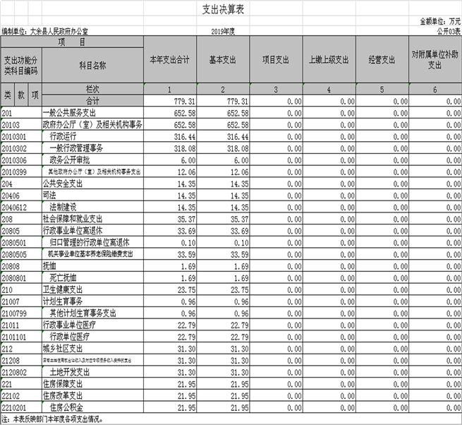 (一)一般公共服務支出(類)政府辦公廳(室)及相關機構事務(款)行政運行(項):反映行政單位(包括實行公務員管理的事業單位)的基本支出。