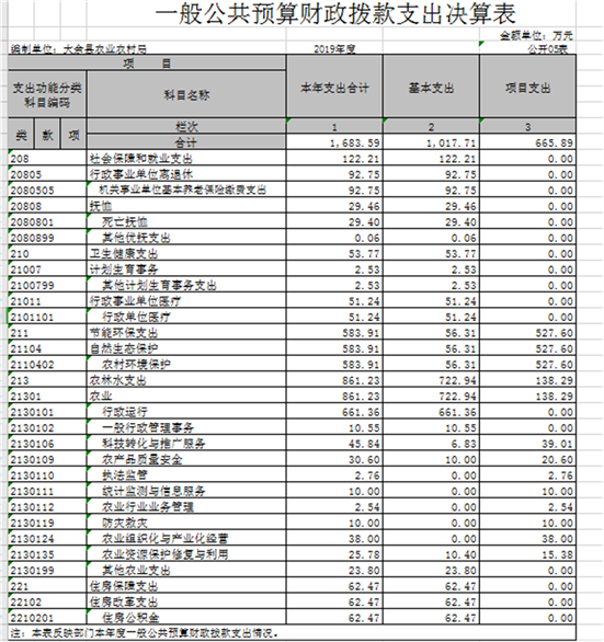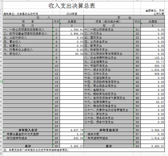 大余縣農(nóng)業(yè)農(nóng)村局2019年度部門決算