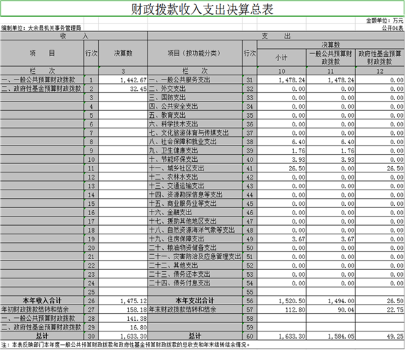 四、財(cái)政撥款收入支出決算總表