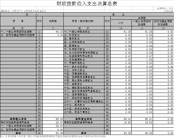 ??? 四、財政撥款收入支出決算總表