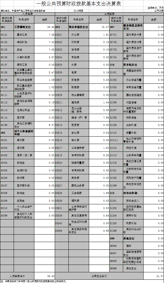 (一)工資福利支出35.4萬元,較2018年35.01萬元增加0.39萬元,增長1.11%,主要原因是:人員經費增加。