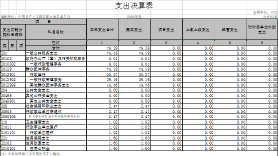 本年支出的具體構成為:基本支出79.29萬元,占100%;項目支出0萬元,占0%;經營支出0萬元,占0%;其他支出(對附屬單位補助支出、上繳上級支出)0萬元,占0%。