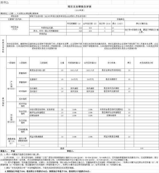 項目績效自評綜述:根據年初設定的績效目標,軍轉干部生活補助項目績效自評得分為100分。項目全年預算數為210萬元,執行數為210萬元,完成預算的100%。主要產出和效果:一是為符合條件的軍轉干部發放生活補助1611人次;二是每月按計劃及時向財政請款,及時撥付;三是全年足額撥付生活補助資金210萬元。