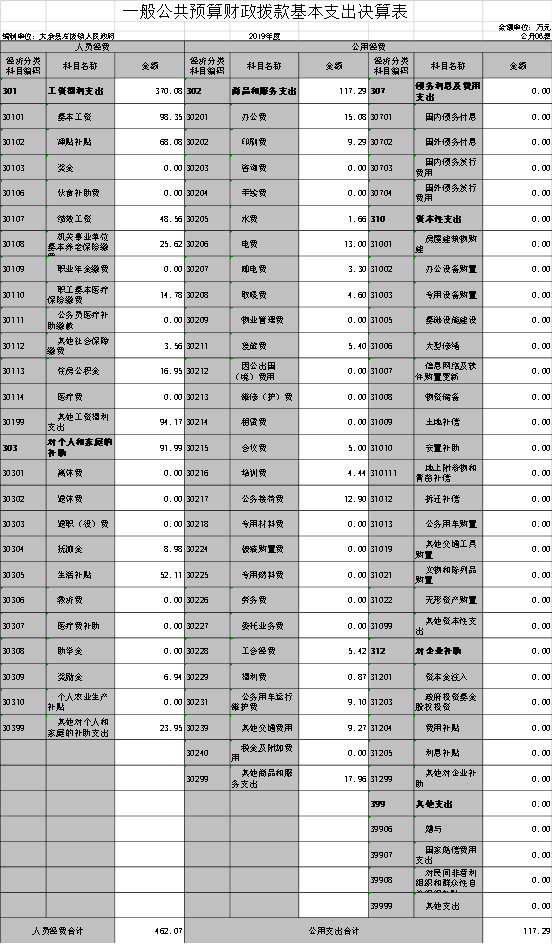 (一)工資福利支出370.08萬元,較2018年減少42.68萬元,下降10.34%,主要原因是:調出人員增加。