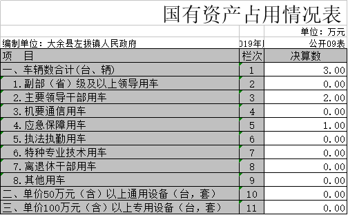 (三)公務用車購置及運行維護費支出 9.5 萬元,其中公務用車購置年初預算數為0 萬元,決算數為 0 萬元,完成年初預算的 0%,決算數較2018年增加(減少) 0 萬元,增長(下降)0 %。決算數較年初預算數增加(減少)的主要原因是:……;公務用車運行維護費支出年初預算數為9.5萬元,決算數為9.1萬元,完成年初預算的95.79%,決算數與2018年持平。