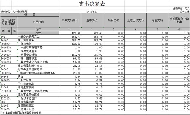 六、一般公共服務(wù)(類)統(tǒng)計信息事務(wù)(款) 行政運行(項):指統(tǒng)計局行政單位及參照公務(wù)員管理的事業(yè)單位用于機構(gòu)正常運行、開展日常工作的基本支出。