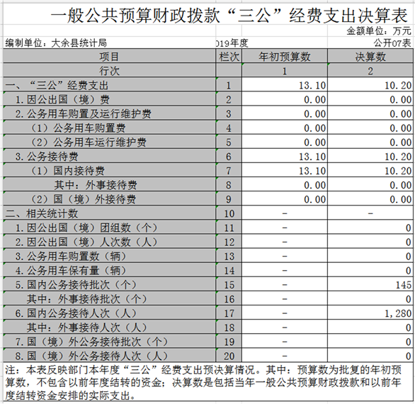 七、一般公共預(yù)算財政撥款“三公”經(jīng)費支出決算表
