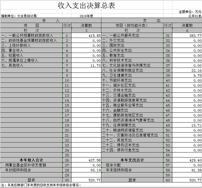 納入本套部門決算匯編范圍的單位共1個,包括:大余縣統(tǒng)計局本級、農(nóng)村經(jīng)濟調(diào)查隊、普查中心、統(tǒng)計執(zhí)法大隊。