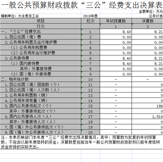 大余縣總工會2019年度部門決算