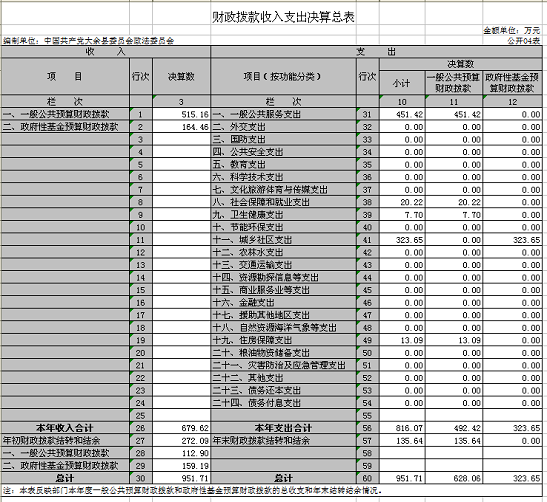 四、財政撥款收入支出決算總表