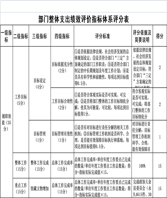 部門整體支出績效評價指標體系及評分標準-2019年 (大余縣檔案局)