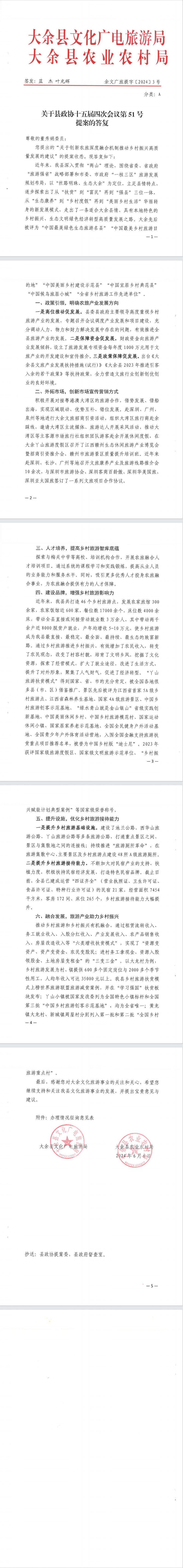 余文廣旅提字〔2024〕3號-關于縣政協十五屆四次會議第51號提案的答復
