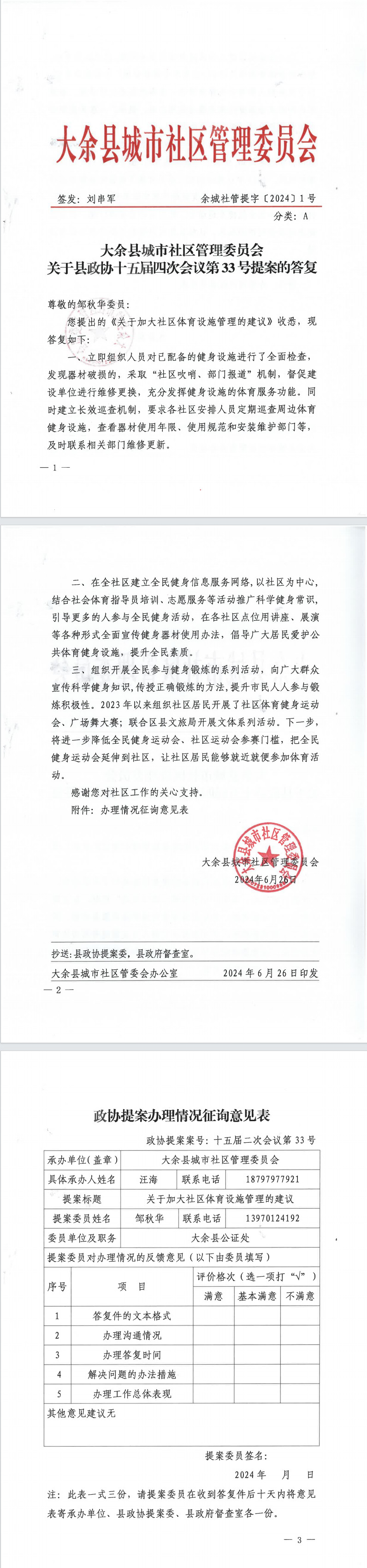 大余縣城市社區管理委員會關于縣政協十五屆四次會議第33號提案的答復