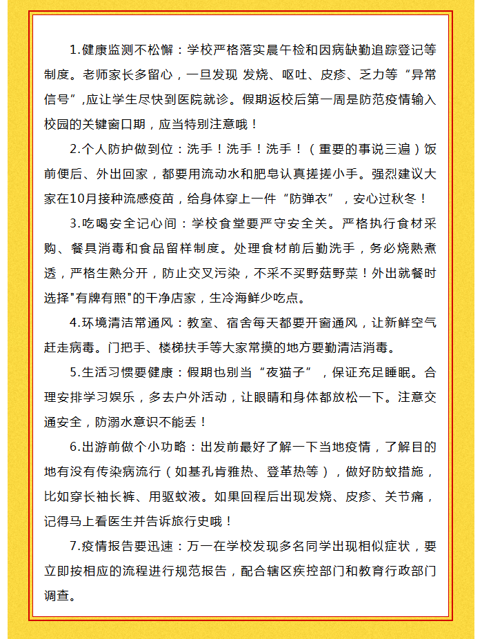 金秋十月好時節,健康防護不停歇——2025年10月學校健康風險提示