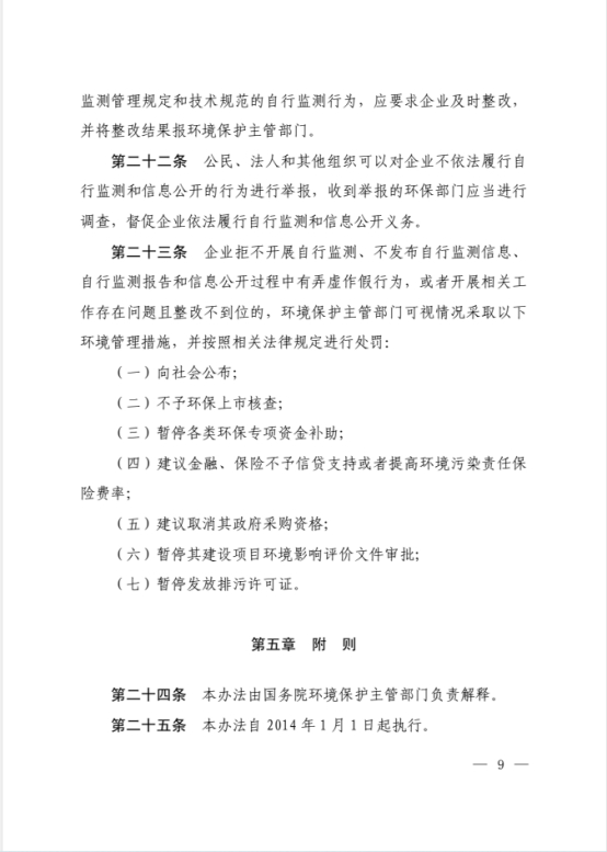 國家重點監控企業自行監測及信息公開辦法(試行)20140101起施行