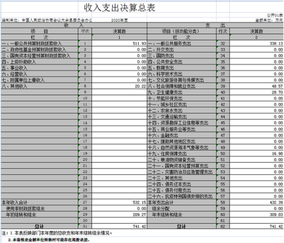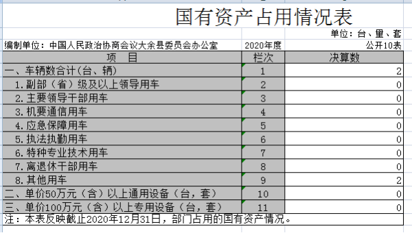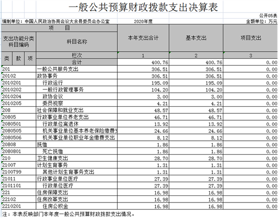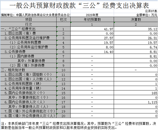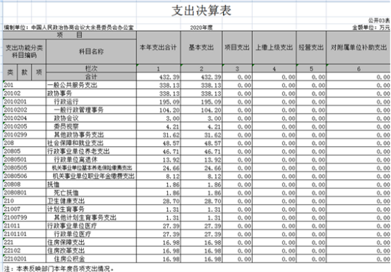 附件:中國人民政治協商會議大余縣委員會辦公室決算公開表2020 (1)