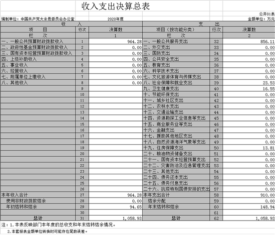 本部門2020年度支出總計1058.96萬元,其中本年支出合計910萬元,較2019年增加431.22萬元,增長90.07 %,主要原因是:安可替代工程追加撥款409.22萬元;機構改革原臺辦、政研室、保密局合并到我辦,新增工作經費42萬元;年末結轉和結余148.94萬元,較2019年增加54.29萬元,增長57.36%,主要原因是:財政應返還額度增加。