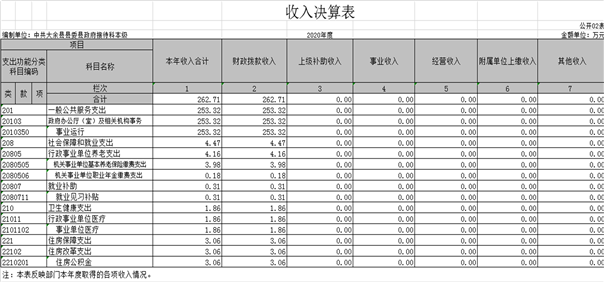 本年收入的具體構成為:財政撥款收入 262.71 萬元,占100 %;事業收入 0 萬元,占 0 %;經營收入 0 萬元,占0 %;其他收入 0 萬元,占 0 %。