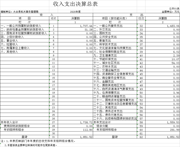 納入本套單位決算匯編范圍的單位共 1 個(gè),即:大余縣機(jī)關(guān)事務(wù)管理局。