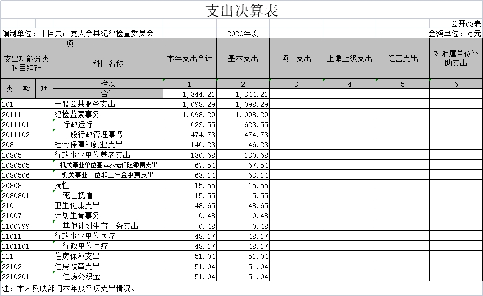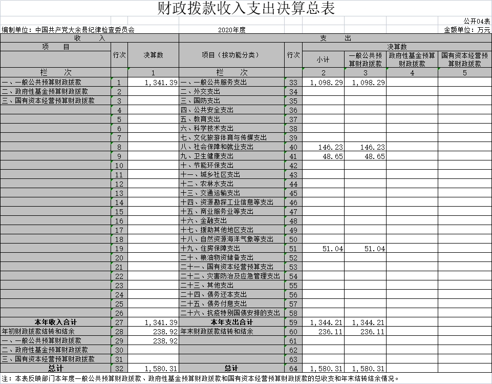 第二部分 中國共產黨大余縣紀律檢查委員會本級2020年度單位決算表