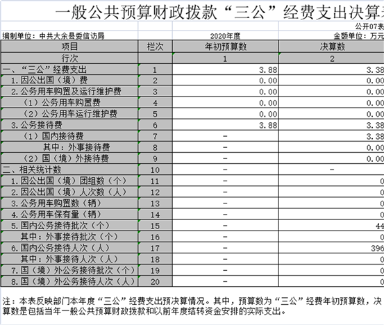 本部門2020年度一般公共預算財政撥款“三公”經費支出年初預算數為3.88萬元,決算數為3.3816萬元,完成預算的87.15%,決算數較2019年減少0.0084萬元,下降0.24%,其中: