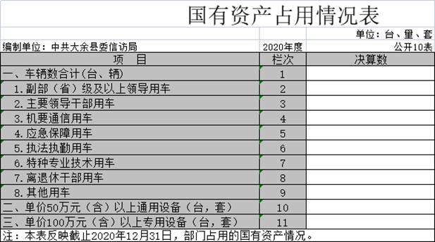 截止2020年12月31日,本單位國有資產占用情況見公開10表《國有資產占用情況表》。其中車輛中的其他用車主要是本單位無車輛。