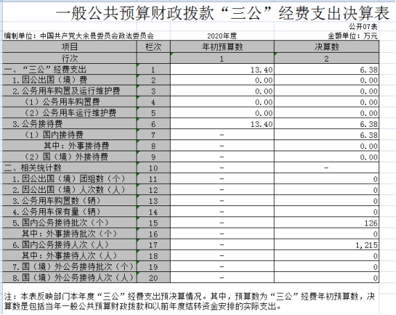 (五)“三公經費”:納入財政預決算管理的“三公”經費,是指部門用財政撥款安排的因公出國(境)費、公務用車購置及運行費和公務接待費。其中,因公出國(境)費反映單位公務出國(境)的國際旅費、國外城市間交通費、住宿費、伙食費、培訓費、公雜費等支出;公務用車購置及運行費反映單位公務用車車輛購置支出(含車輛購置稅)及租用費、燃料費、維修費、過路過橋費、保險費、安全獎勵費用等支出;公務接待費反映單位按規定開支的各類公務接待支出。