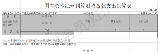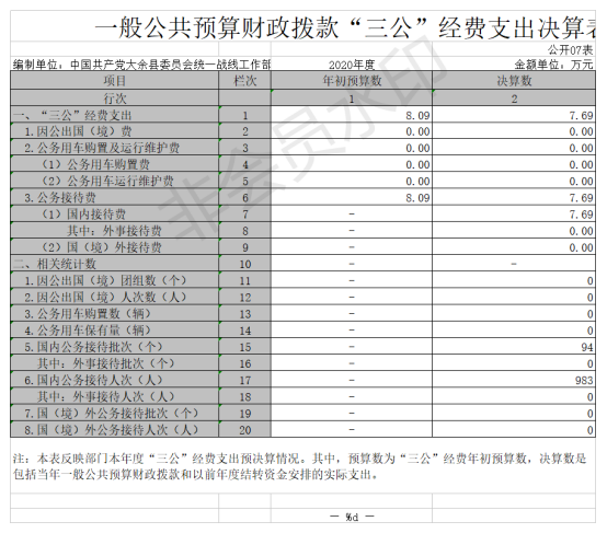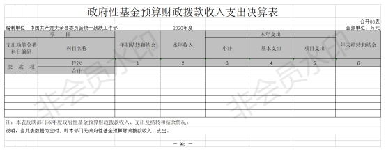 中國共產黨大余縣委員會統一戰線工作部2020年度部門決算