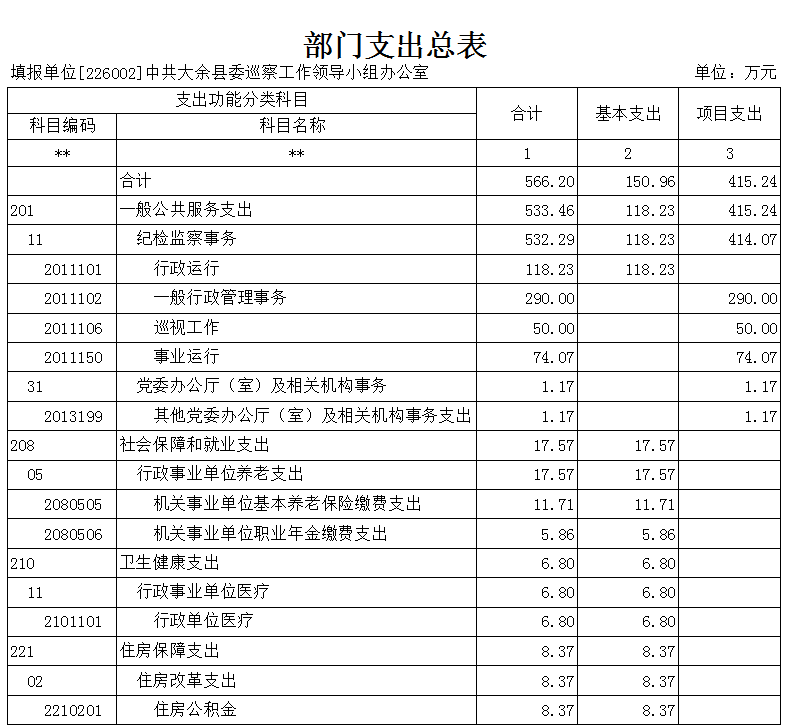 中共大余縣委巡察工作領(lǐng)導(dǎo)小組辦公室的重點項目是專項巡察經(jīng)費,說明如下: