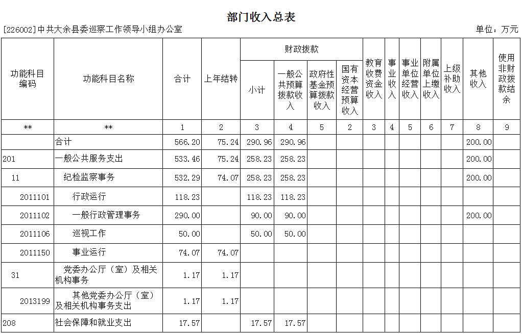 第二部分 中共大余縣委巡察工作領(lǐng)導(dǎo)小組辦公室2022年部門預(yù)算表