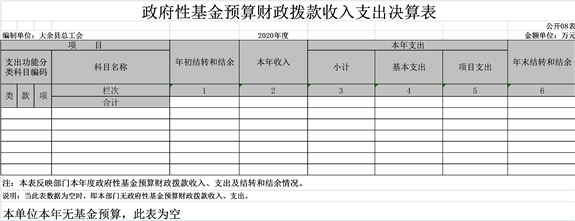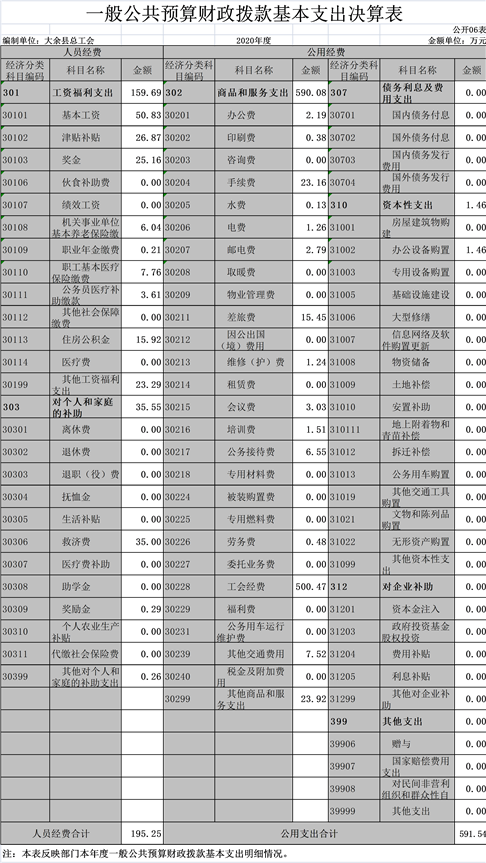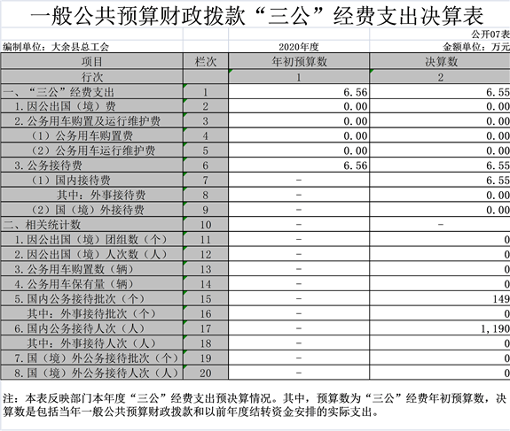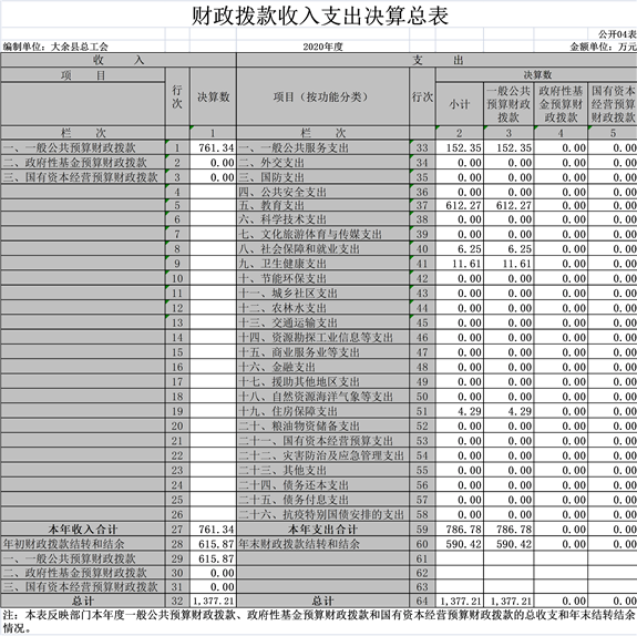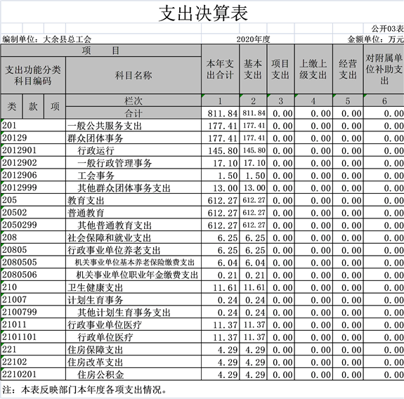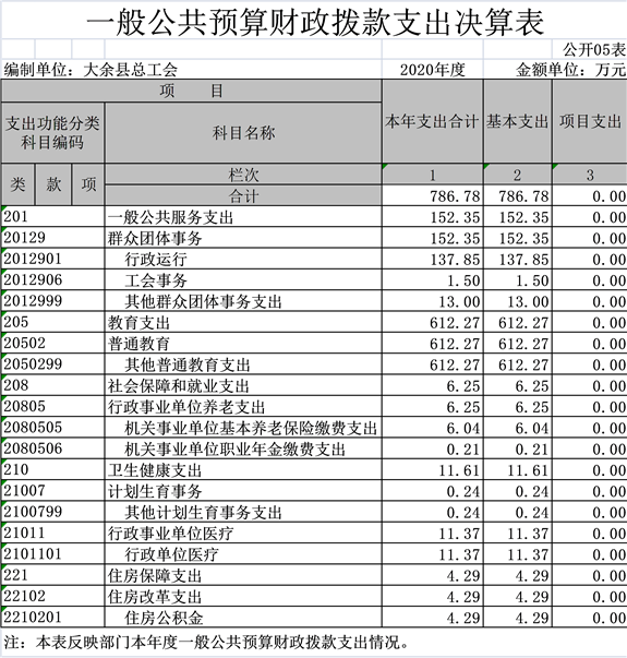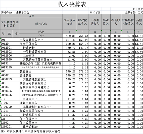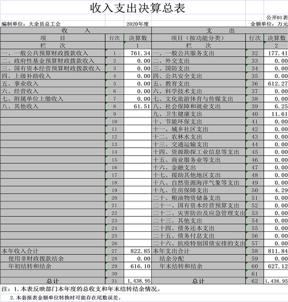 納入本套部門決算匯編范圍的單位共1個,包括:大余縣總工會本級。