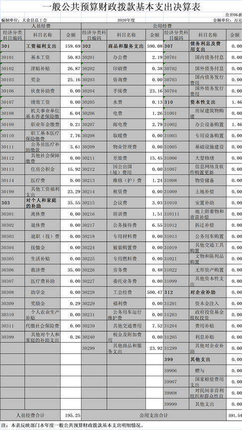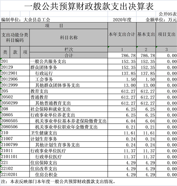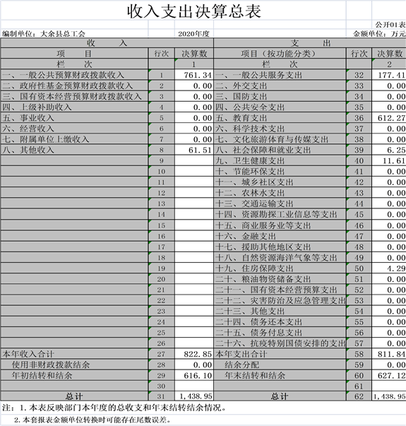 納入本套單位決算匯編范圍的單位共1個,包括:大余縣總工會本級。
