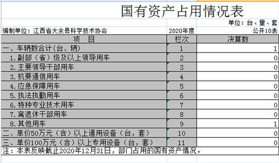 截止2020年12月31日,本部門(單位)國(guó)有資產(chǎn)占用情況見(jiàn)公開(kāi)10表《國(guó)有資產(chǎn)占用情況表》,我單位共有車輛1輛,其中車輛中的其他用車主要是用于開(kāi)展科普活動(dòng)。