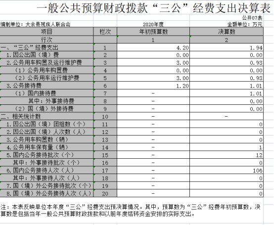 (二)三公經費”:指用一般公共預算財政撥款安排的因公出國(境)費、公務用車購置及運行維護費和公務接待費。其中,因公出國(境)費反映單位公務出國(境)的國際旅費、國外城市間交通費、住宿費、伙食費、培訓費、公雜費等支出;公務用車購置及運行維護費反映單位公務用車車輛購置支出(含車輛購置稅、牌照費),按規定保留的公務用車燃料費、維修費、過橋過路費、保險費、安全獎勵費用等支出;公務接待費反映單位按規定開支的各類公務接待(含外賓接待)支出。