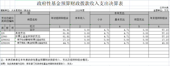 我單位今年在部門決算中反映各項民生工程殘疾人項目專項經費、殘疾人基本服務狀況和需求信息數據動態更新工作經費及殘疾人就業保障金支出項目績效自評結果。